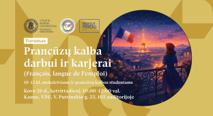 Kovo 26 d., ketvirtadienį, 10:00–12:00 val., Kaune, VDU, V. Putvinskio g. 23, 103 auditorijoje organizuojamas FORUMAS „Prancūzų kalba darbui ir karjerai“, į kur...